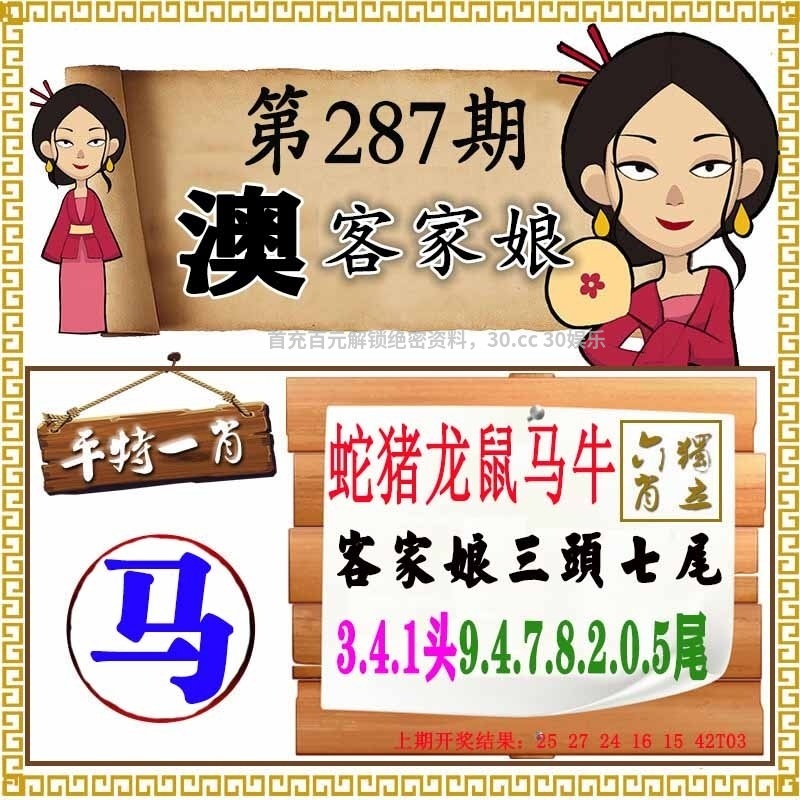 286期玄机锦囊 合取三二当可贵, 四三四四南北威。 解析:合取三二当可贵,解三兔二龙三十二狗,四三四四南北威,解四虎三兔四十三猪三十四猴四十四狗 综合生肖:兔龙狗虎猪猴 |
